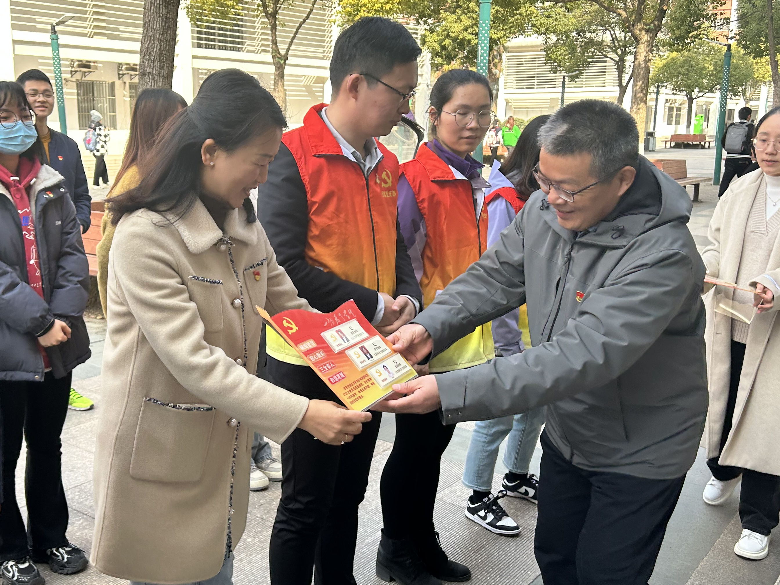 活动仪式上,入党积极分子俞晓雅和大家分享了雷锋故事,党员代表张为郑重做出服务承诺。仪式结束后,全体党员、入党积极分子和学生代表到扬子津西校区学生公寓5#和7#楼周边开展环境整治活动,解决脏乱差难题,提升学生住宿环境。活动过后,大家走访学生宿舍,了解学生住宿需求,向学生分发党员热线联络卡,并将“党员亮身份”的牌子在大厅公示,方便为学生排忧解难。